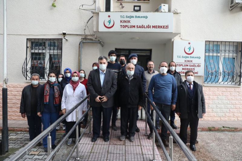 Kartal’da, Aile Sagligi Merkezinde görevli hemsire Ömür Erez’in silahli bir saldirgan tarafindan öldürülmesi nedeniyle Kinik Ilçe Kaymakami Erol Türkmen, Kinik Belediye Baskani Dr. Sadik Dogruer, Kinik Ilçe Jandarma Komutani Oral Kaymak, Kinik Ilçe Milli Egitim Müdürü Ömer Derelioglu, Kinik Toplum sagligi merkezini ziyaret ederek saglik çalisanlarina bassagligi diledi.